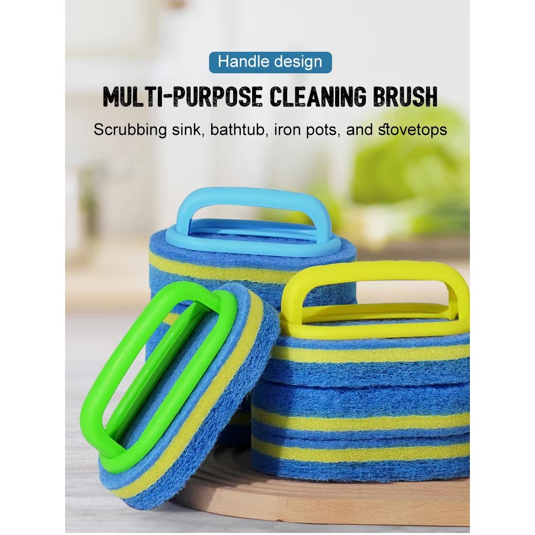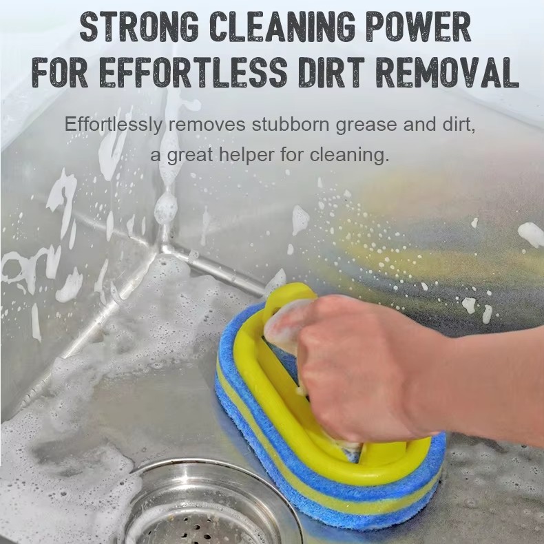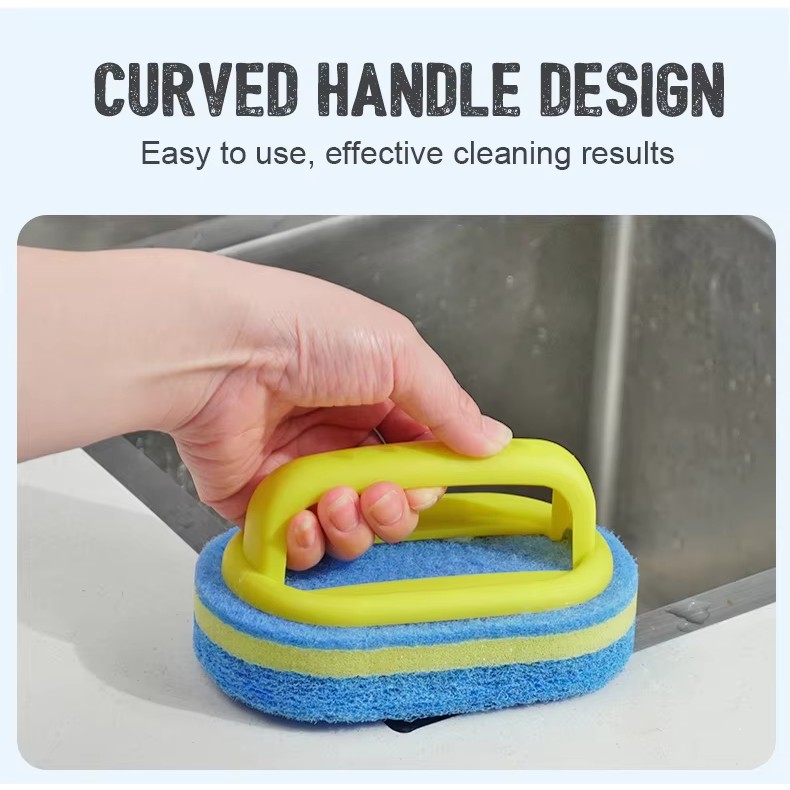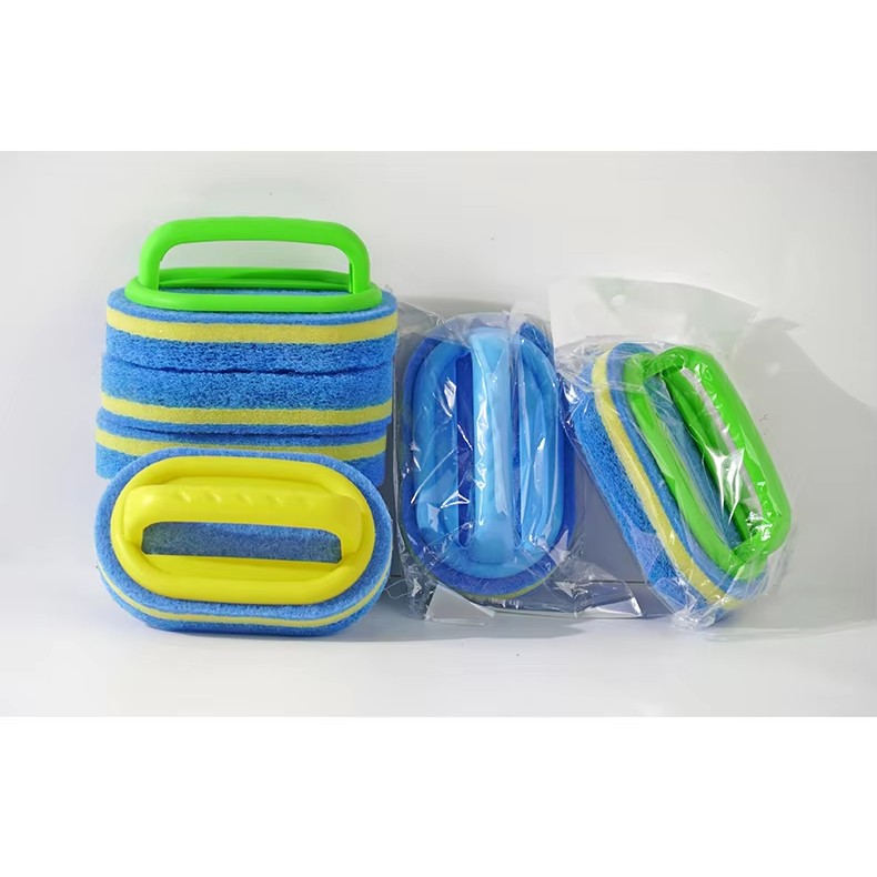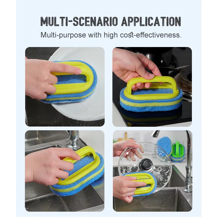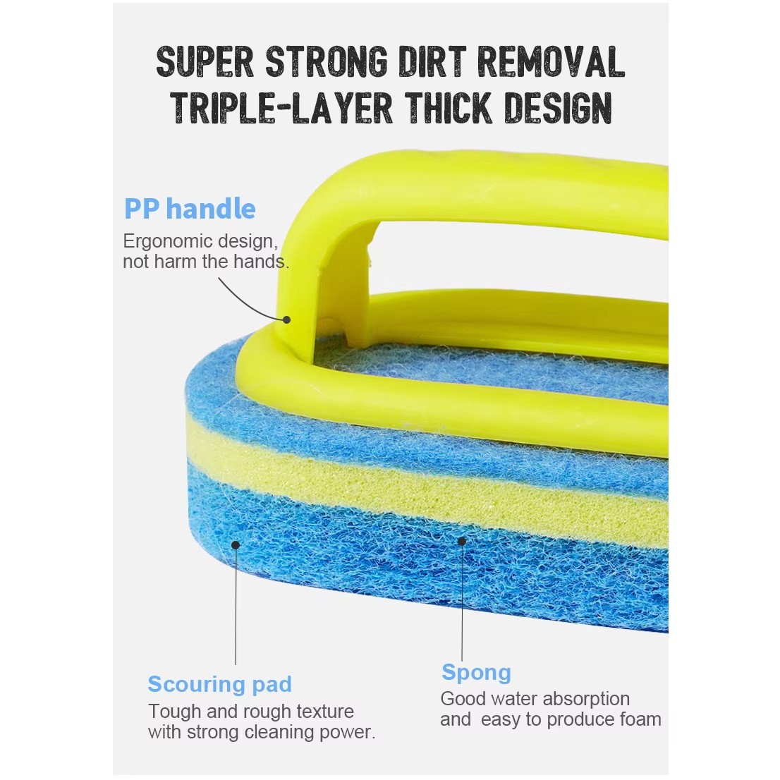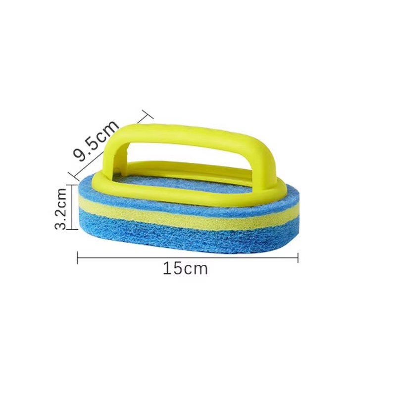 แปรงฟองน้ำทำความสะอาดห้องน้ำพร้อมที่จับพลาสติกสามารถใช้ทำความสะอาดพื้นผิวต่างๆในห้องครัวและห้องน้ำได้ ไม่ว่าจะเป็นการทำความสะอาดหม้อ กระทะ กระเบื้อง หรืออ่างอาบน้ำ